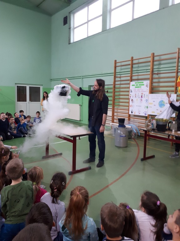 Uczniowie dowiedzieli się między innymi czym jest perhydrol, jodek potasu i do czego możemy ich użyć. Ponadto uczniowie zapoznali się w jaki sposób stworzyć własną chmurę oraz czym jest fala akustyczna i uderzeniowa, i jak doprowadzić do ich powstania. W trakcie pokazu pan Mateusz zapoznał swoich widzów czym jest ciekły azot, jak go przechowywać oraz jak go można wykorzystać. Podczas przeprowadzania eksperymentów odważni i chętni uczniowie wzięli czynny udział w pokazie. Wszystkie doświadczenia przeprowadzone zostały z zachowaniem wszelkich środków ostrożności i były bezpieczne.