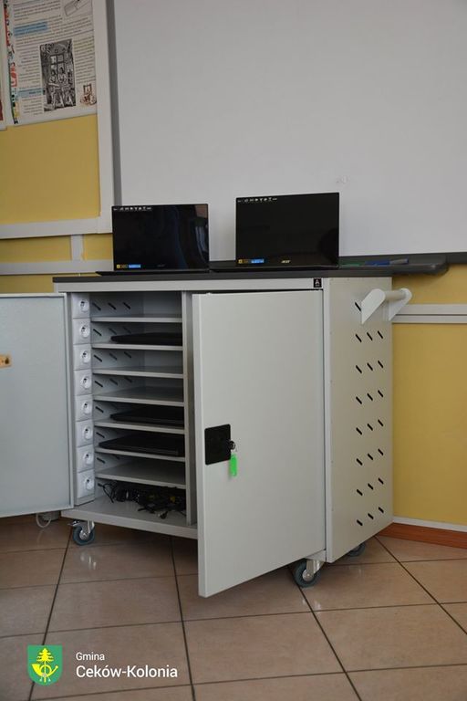 25 lutego 2020r. w ramach projektu "Podniesienie Kompetencji Cyfrowych Mieszkańców Województw Wielkopolskiego i Zachodniopomorskiego" naszej szkole został przekazany sprzęt komputerowy oraz szafa umożliwiająca bezpieczne przechowywanie i ładowanie laptopów.