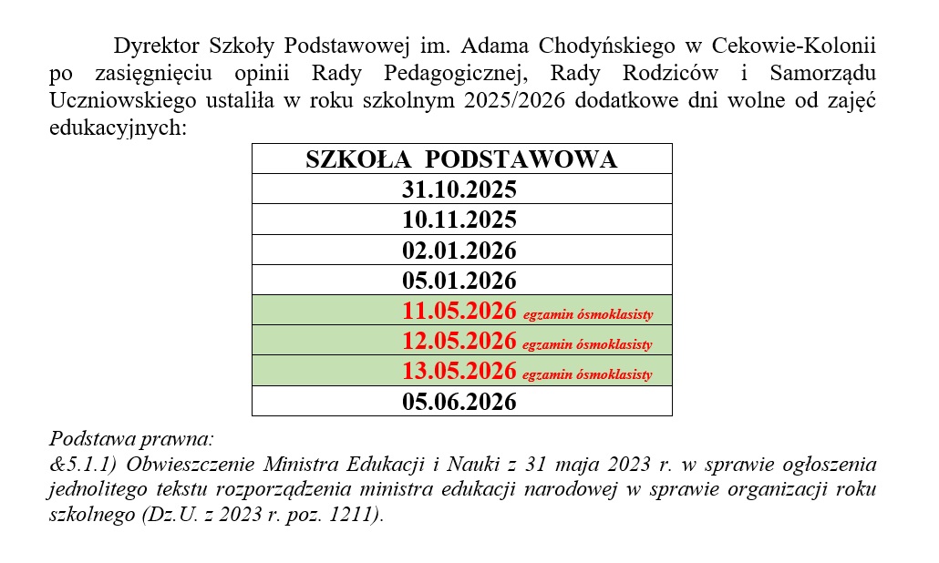 • Witamy na stronie internetowej Szkoły Podstawowej im. Adama Chodyńskiego w Cekowie-Kolonii