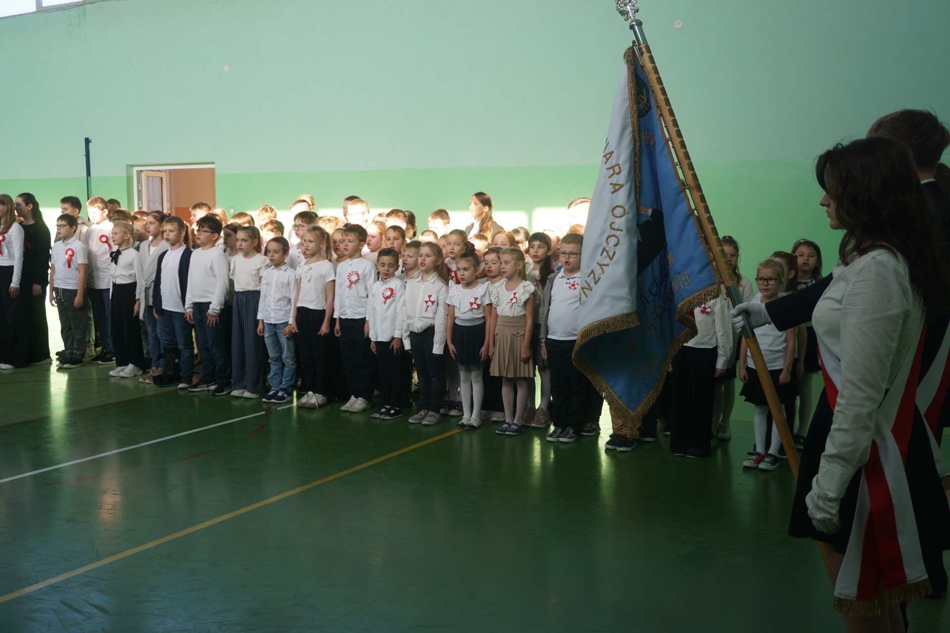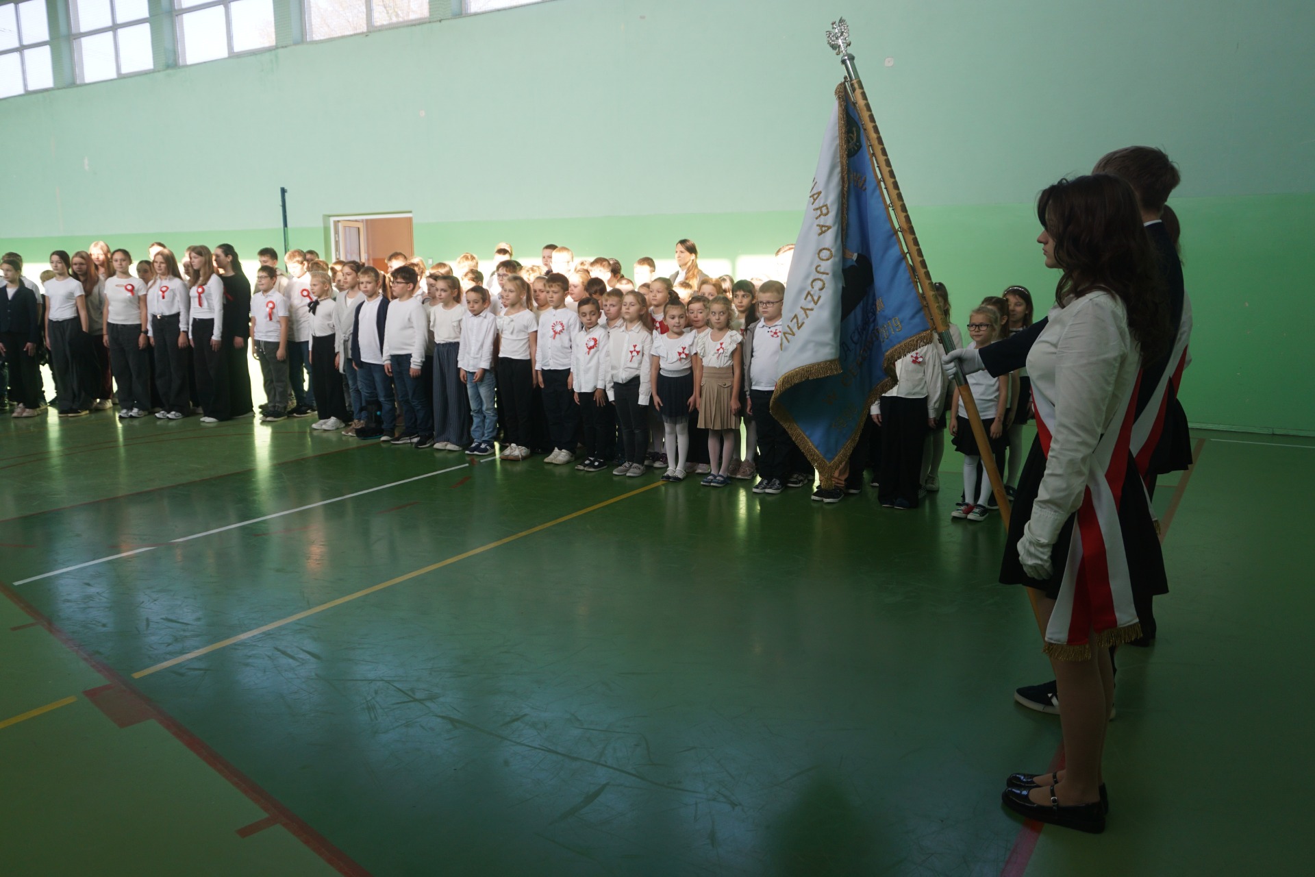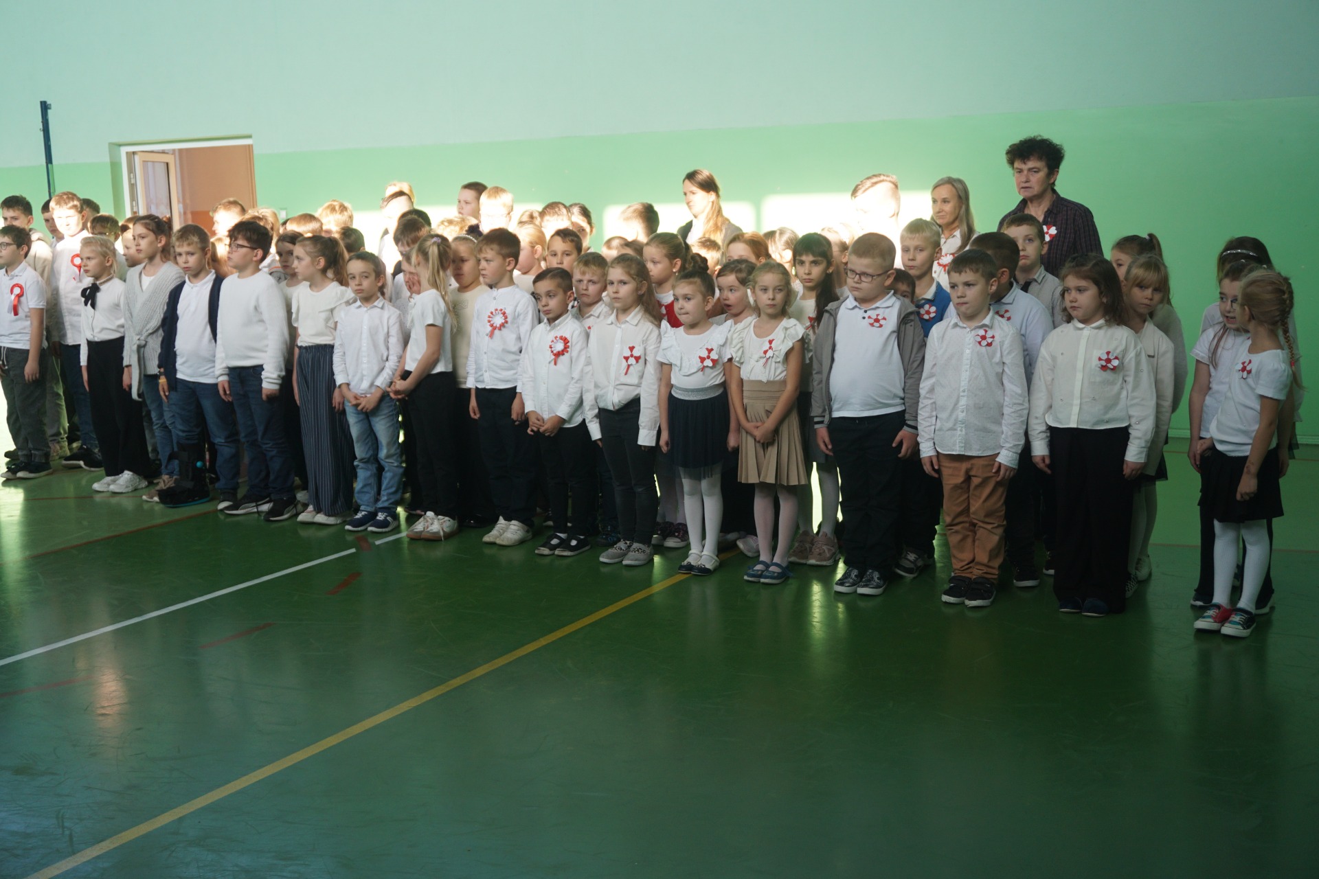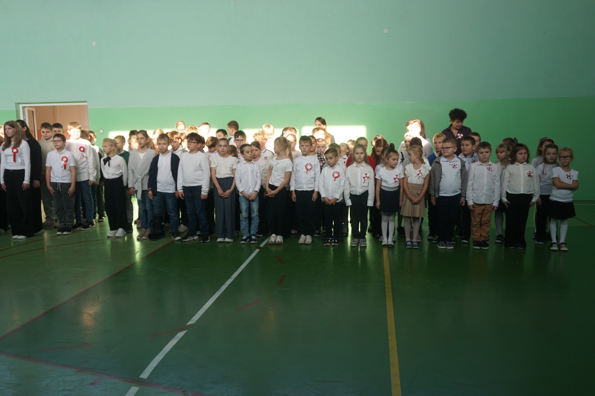 Uczniowie, nauczyciele szkoły wspólnie odśpiewali „Mazurka Dąbrowskiego”, dając wyraz patriotyzmu i jedności w przededniu Narodowego Święta Niepodległości.