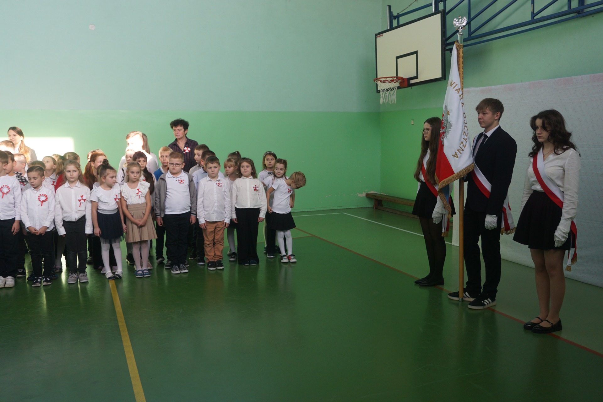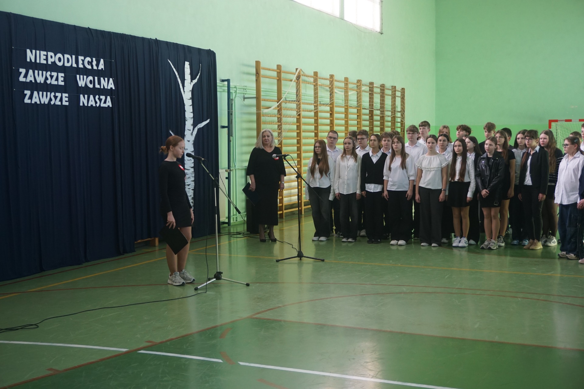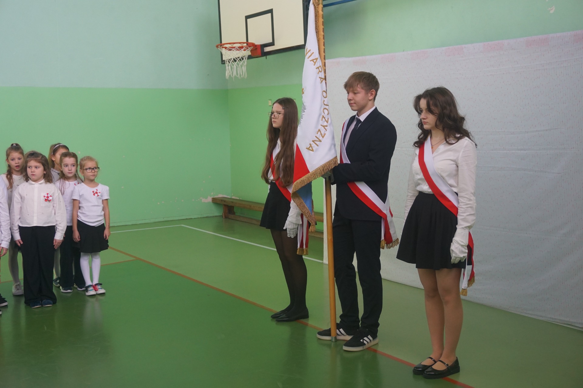 Uczniowie, nauczyciele szkoły wspólnie odśpiewali „Mazurka Dąbrowskiego”, dając wyraz patriotyzmu i jedności w przededniu Narodowego Święta Niepodległości.