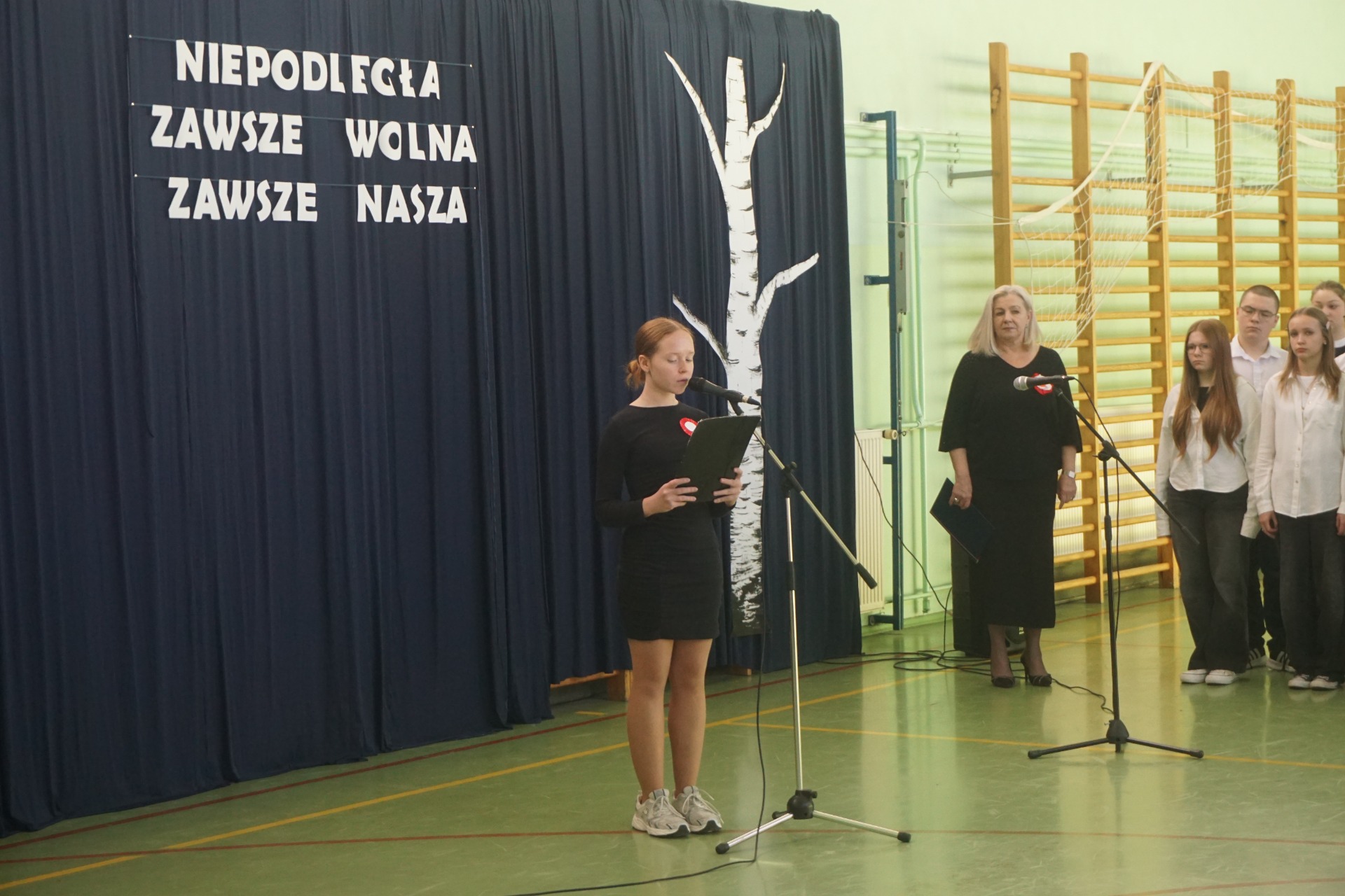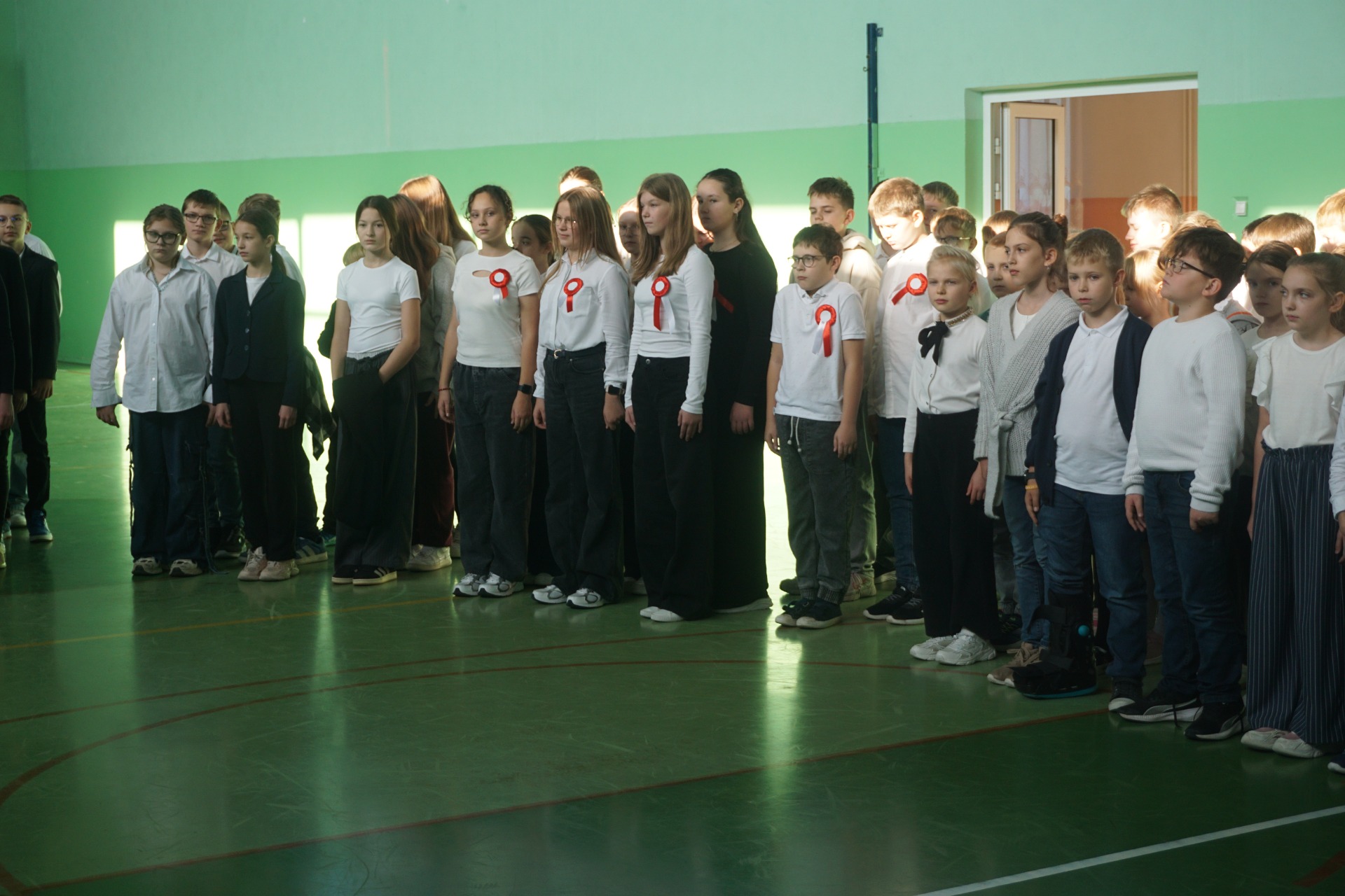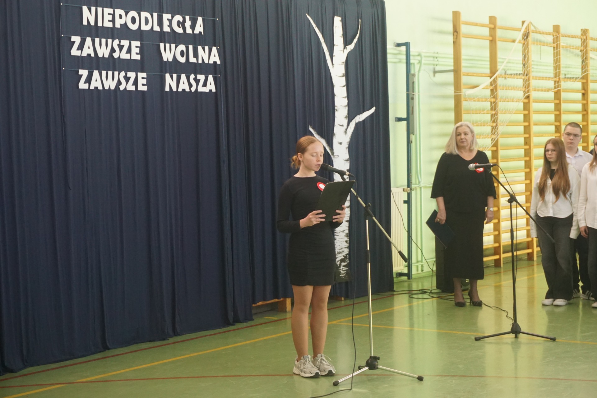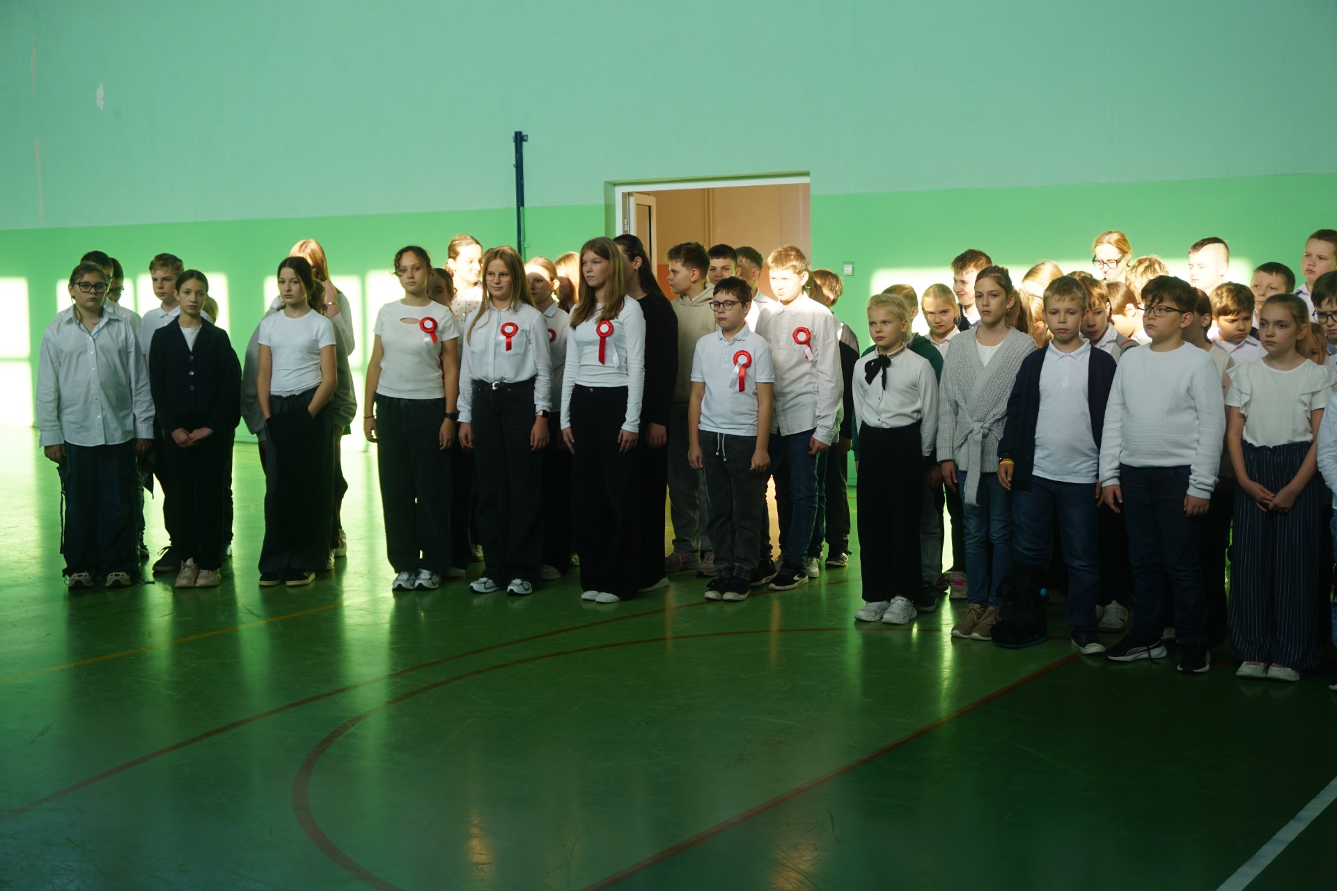 Uczniowie, nauczyciele szkoły wspólnie odśpiewali „Mazurka Dąbrowskiego”, dając wyraz patriotyzmu i jedności w przededniu Narodowego Święta Niepodległości.