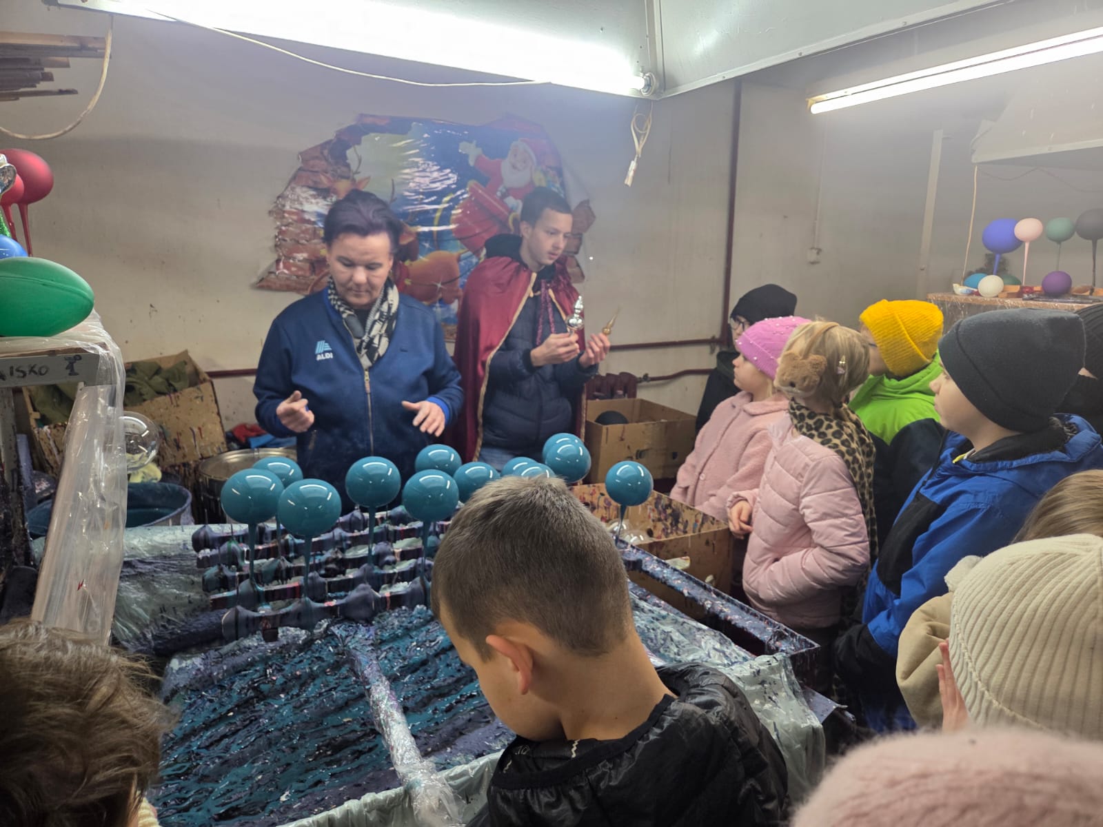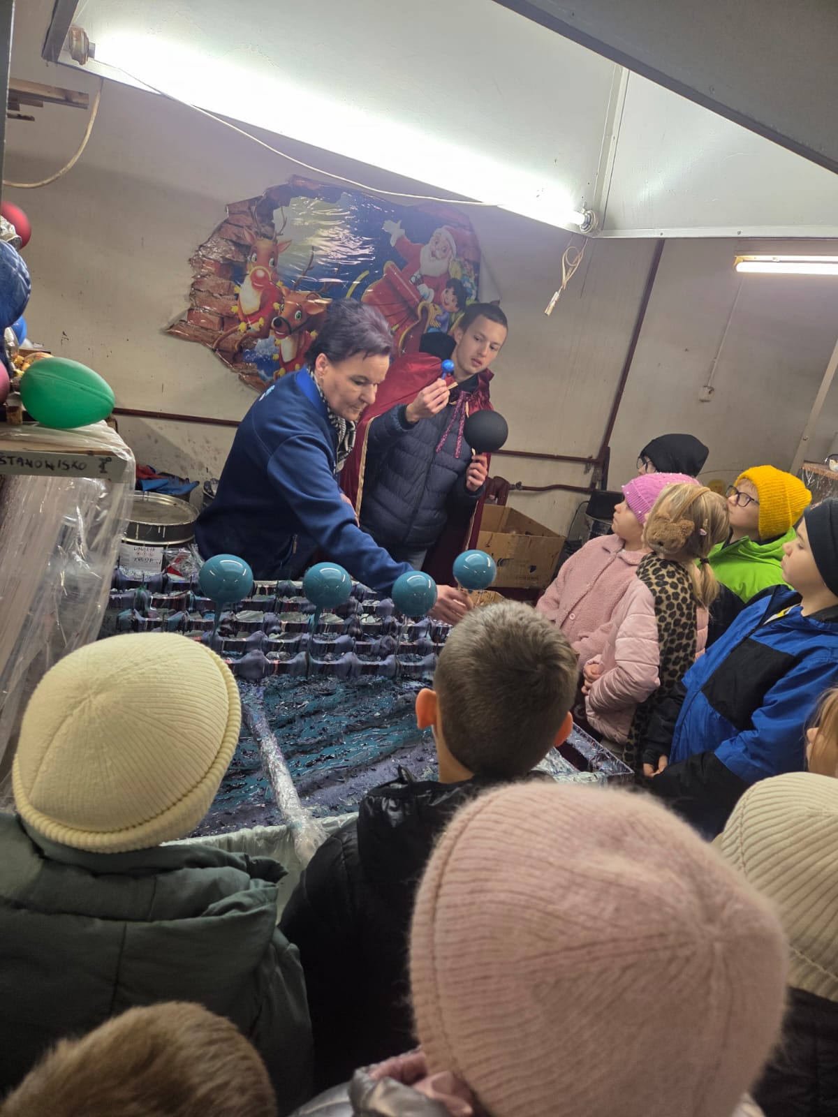 20 listopada 2025r. uczniowie klas I-III wybrali się na wycieczkę do fabryki bombek "KADPOL’’ w Gnieźnie. Wycieczka miała na celu zwiedzanie fabryki, w której produkcja odbywa się ręcznie oraz zapoznanie z procesem powstawania ozdób choinkowych. Zwiedzanie obejmowało cztery główne działy produkcji. W dziale „dmuchalnia” dzieci zobaczyły jak podgrzewa się szklane rury, by z przygotowanych porcji szkła wydmuchać kule, z których powstaną piękne ozdoby choinkowe.